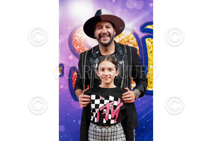 El conductor Faisy, acompañado de su hija Katixa durante la Alfombra Roja de la puesta en escena "José el Soñador", del director Mariano Detry