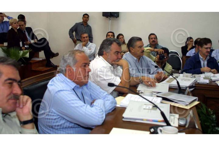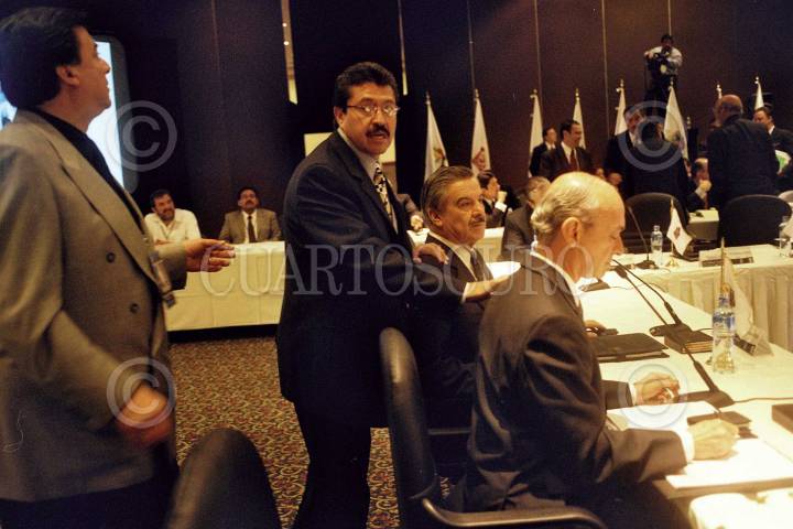 Patricio Martínez gobernador de Chihuahua, Fernando Moreno de Colima, Alejandro Encinas representante del gobierno del D.F. y José Angel Guerrero Miel de Durango durante los trabajos de la segunda reunión extraordinaria de la CONAGO. FOTO: Juan Sotelo/CUARTOSCURO.COM