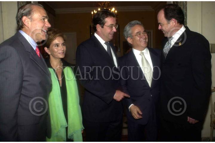 El exsecretario de Hacienda José Angel Gurria y su esposa, acompañan al embajador francés en México Philipe Faure y a su invitado especial Bernardo Quintana, ingeniero miembro de ICA, durante la entrega de condecoración especial otorgada a Quintana por el diplomático francés. En la imagen invitan a Jhon Mcarty para la foto del recuerdo. FOTO: Juan Pablo Zamora/CUARTOSCURO.COM