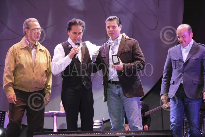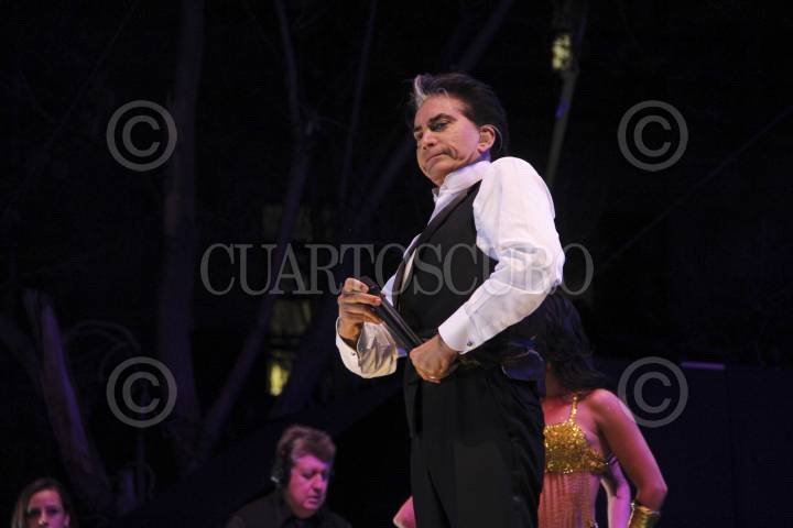 ZACATECAS, ZACATECAS, 30MARZO2013.- El cantante venezolano José Luis Rodríguez "el Puma" se presentó en el 27 Festival Cultural Zacatecas, donde fue ovacionado y reconocido con el minero de Plata por parte del gobernador del estado Miguel Alonso Reyes, Gustavo Salinas Iñíguez, director del Instituto Zacatecano de Cultura y por Arnoldo Rodríguez Reyes, Alcalde de la Capital. FOTO: ALEJANDRO ORTEGA NERI /CUARTOSCURO.COM
