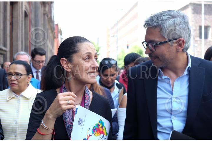 CIUDAD DE MÉXICO, 02JULIO2019.- Claudia Sheinbaum, jefa de Gobierno y el diputado local José Luis Rodríguez al término de la presentación de acciones de fortalecimiento de la estrategia de Seguridad en la capital, la cual se realizó en el Museo de la Ciudad. FOTO: GRACIELA LÓPEZ /CUARTOSCURO.COM