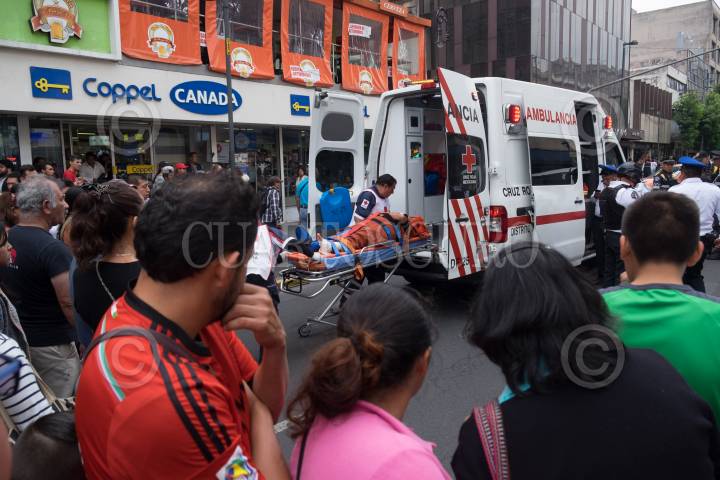 CIUDAD DE MÉXICO, 09JUNIO2018.- Una mujer de tercera edad fue atropellada en el cruce de la Av. José María Pino Suárez y la calle República de El Salvador; elementos de la Cruz roja la asistieron y trasladaron en ambulancia. FOTO: ANDREA MURCIA /CUARTOSCURO.COM