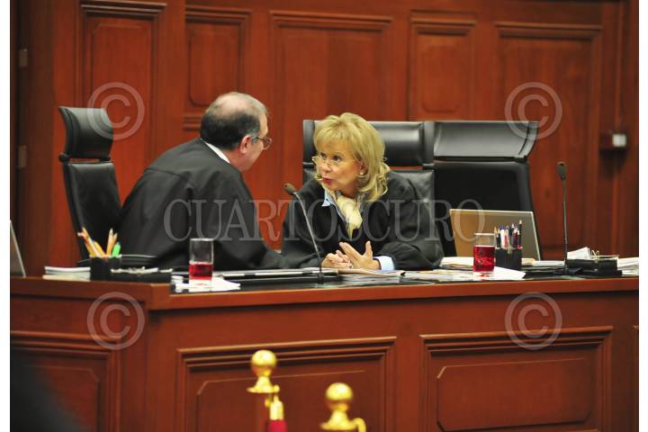 MÉXICO, D.F., 09SEPTIEMBRE2013.- La ministra Olga María del Carmen Sánchez Cordero de García Villegas y el ministro José Ramón Cossío Díaz en la sesión de hoy en la SCJN. FOTO: CUARTOSCURO.COM