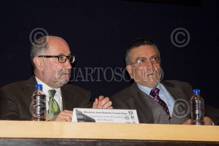 MÉXICO, D.F., 16ABRIL2013.- El ministro de la Suprema Corte de Justicia de la Nación José Ramón Cossío Díaz y el presidente del Tribunal Superior de Justicia de Distrito Federal, magistrado Edgar Elías Azar, participaron en el seminario La prueba y la argumentación de los hechos, efectuado en el Instituto de Investigaciones Jurídicas de la UNAM. FOTO: ALFONSO MORA DÍAZ /CUARTOSCURO.COM