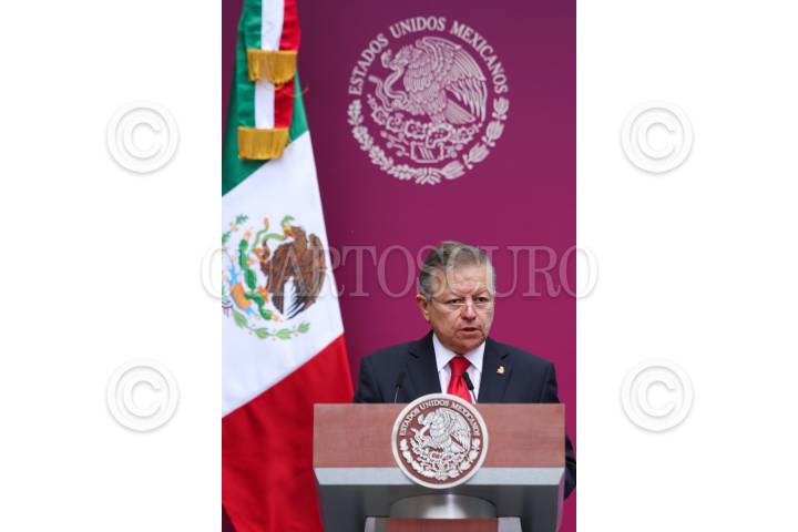 Arturo Zaldívar Lelo de Larrea, ministro presidente de la Suprema Corte de Justicia de la Nación (SCJN), durante la presentación del Nuevo Modelo Laboral en Palacio Nacional.