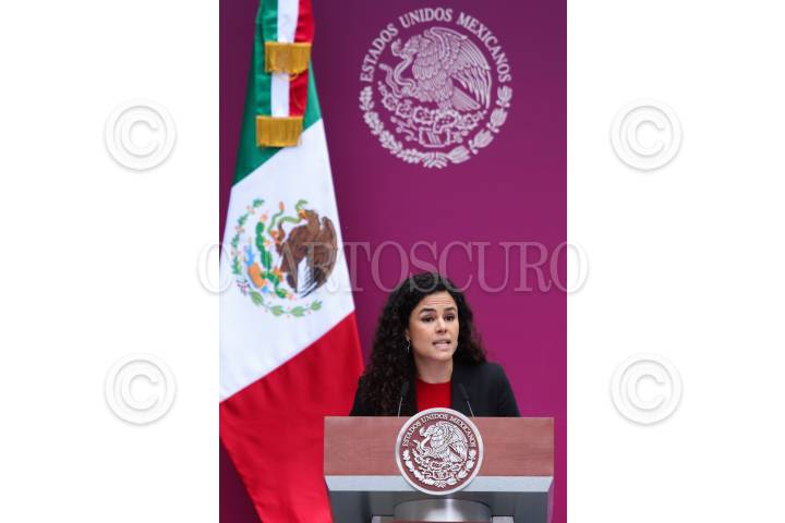 Luisa María Alcalde durante la presentación del Nuevo Modelo Laboral en Palacio Nacional.