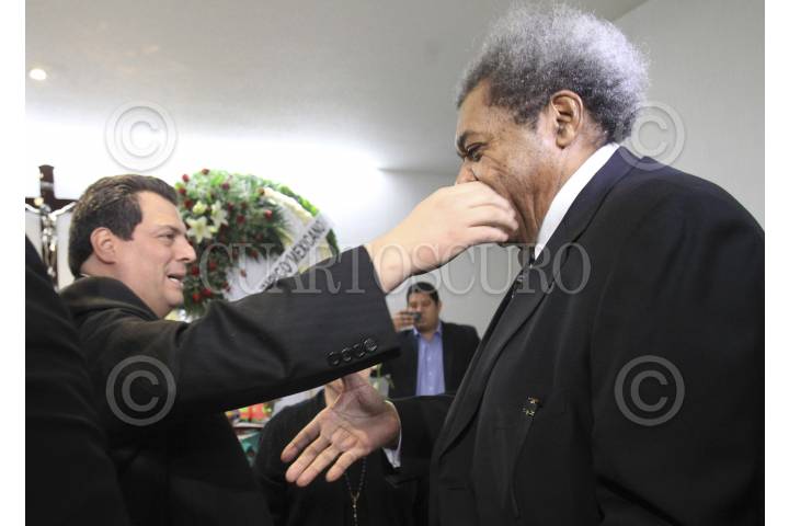 MÉXICO, DF., 18ENERO2014.- Mauricio Sulaimán recibe las condolencias de parte del promotor Don King, durante el funeral de quien fuera su padre José Sulaimán, presidente del CMB, las exequias se realizan en el panteón francés. FOTO: CUARTOSCURO.COM