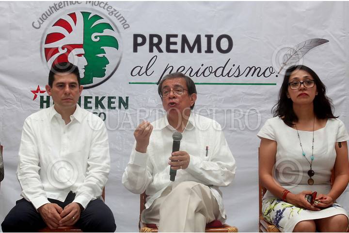 MÉRIDA, YUCATÁN, 31MAYO2017.- La empresa cervecera Heineken México dio a conocer la convocatoria del Premio Cuauhtémoc Moctezuma Heineken México al Periodismo en Yucatán. Durante la presentación estuvieron presentes; Jaime Gutiérrez, gerente regional de operaciones del sureste de Cuauhtémoc Moctezuma-Heineken México; Pedro Valtierra, director de Cuartoscuro Agencia de Fotografía y Editora; la periodista Guadalupe Loaeza; Marco Antonio Mascarúa, vicepresidente de asuntos corporativos Cuauhtémoc Moctezuma Heineken México; Gerardo Galarza, director editorial del periódico Excélsior y presidente del jurado; Josefina Claudia Herrera, periodista y jurado en la categoría nota informativa; Joel Hernández, periodista y jurado en la categoría de crónica; Francisco Ortiz Pinchetti, periodista y jurado en la categoría reportaje; José Carreño, Periodista y Jurado categoría crónica. FOTO: CORTESÍA /CUARTOSCURO.COM