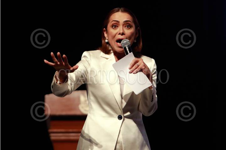 QUERÉTARO, QUERÉTARO, 24FEBRERO2025.- Josefina Vázquez Mota participó en el evento; “Protegiendo el futuro: Unidos por nuestros Niños, Niñas y Adolescentes”, el cual fue convocado por Mauricio Kuri, gobernador de Querétaro. El mandatario estatal presentó la semana pasada en el Senado la iniciativa de regular el uso de las redes sociales en los menores de edad. FOTO: CÉSAR GÓMEZ/CUARTOSCURO.COM