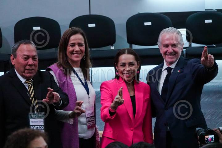 Diana Flores, Paola "La Wera" Kuri, Josefina Vázquez Mota, Katya Echazarreta y Paty Cantú durante el foro "Paridad de Género en el mundo del Deporte" encabezado por Josefina Vázquez Mota en el Senado de la República.