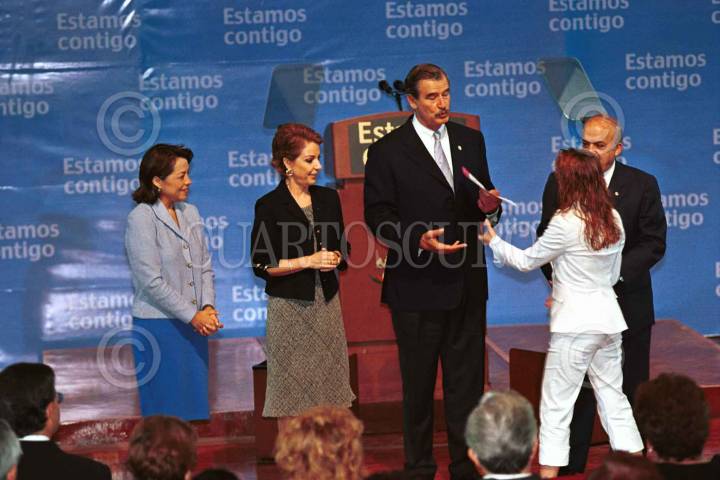Josefina Vázquez Mota, Martha Sahagún y el presidente Vicente Fox , durante la ceremonia de entrega de reconocimientos a las empresas que han generado empleos para adultos mayores. FOTO: Sandra Perdomo/CUARTOSCURO. COM