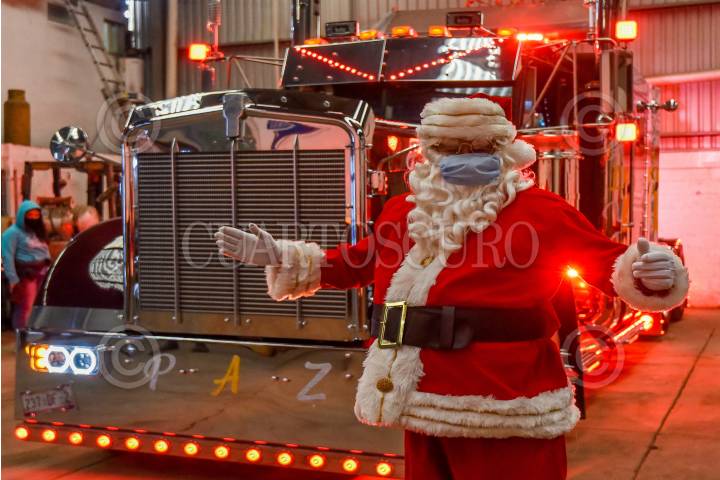 Santa Claus recorre durante las noches los principales avenidas de Toluca en un tractocamión modificado llamado “Capricho” propiedad de Exe Logística, sin difundir su recorrido para evitar aglomeraciones lleva felicidad y alegría a los automovilistas y peatones que encuentra en su camino.