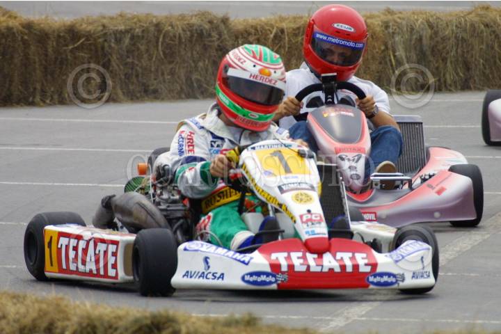 Monterrey, N.L. 29 de Abril de 2004.- Los pilotos mexicanos Mario Domínguez y Michel Jourdain, durante su visita para promocionar el Tecate-Telmex Grand Prix, al mismo tiempo aprovecho para competir en una competencia sobre la pista del Parque Fundidora en Go-karts. FOTO: Jorge López/CUARTOSCURO.COM