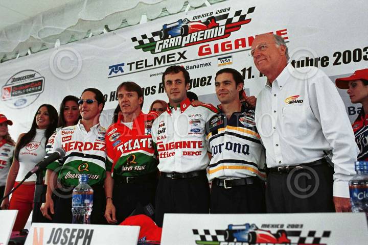 MEXICO, D.F. 29OCTUBRE2004.- Los pilotos mexicanos Roberto González, Michel Jourdain Jr, Mario Domínguez y Rodolfo Lavin de la Champ Car, ofrecieron conferencia de prensa donde pidieron el apoyo de la afición para el Gran Premio de México. FOTO: Nelly Salas/CUARTOSCURO.COM