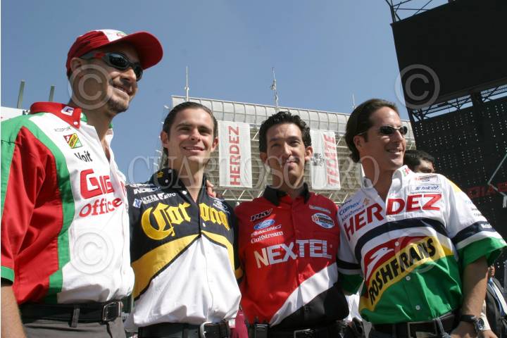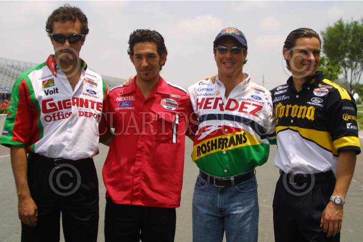 Monterrey, N.L. 19 de mayo de 2004 Los pilotos mexicanos Michel Jourdain, Roberto Gonzalez, Mario Domínguez y Rodolfo Lavin, posan para los medios de comunicación, sobre la pista del Parque fundidora. FOTO; Jorge López/CUARTOSCURO.COM