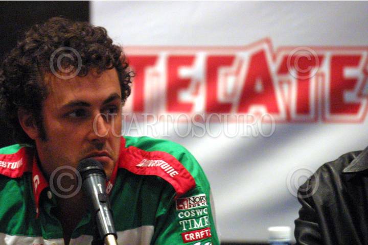 Monterrey, N.L. 20 de Mayo de 2004.- El piloto mexicano Michel Jourdain, durante la presentación de su nuevo equipo el Rusport Team. FOTO: Jorge López/CUARTOSCURO.COM