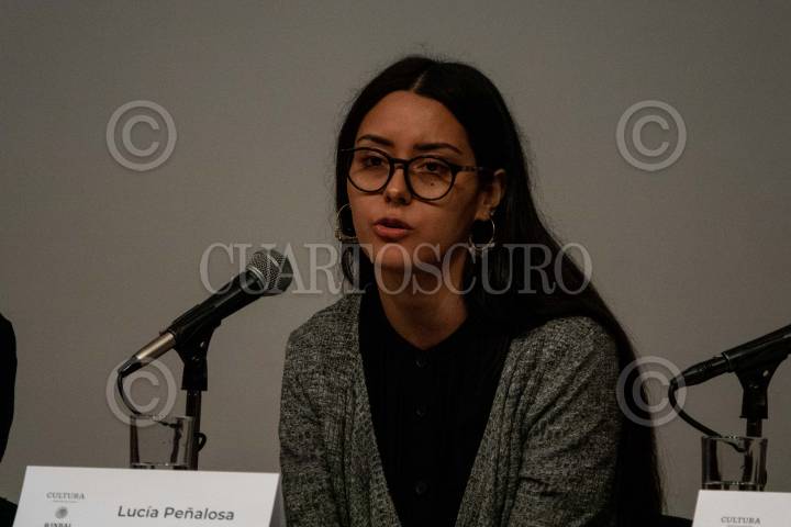 CIUDAD DE MÉXICO, 08SEPTIEMBRE2023.- Lluvia Sepúlveda Jiménez, Coordinación Nacional de Artes Visuales (CNAV), durante su participación en la mesa con motivo del homenaje a 100 años del natalicio de Joy Laville en la Sala Manuel M. Ponce del Palacio de Bellas Artes FOTO: GALO CAÑAS/CUARTOSCURO.COM