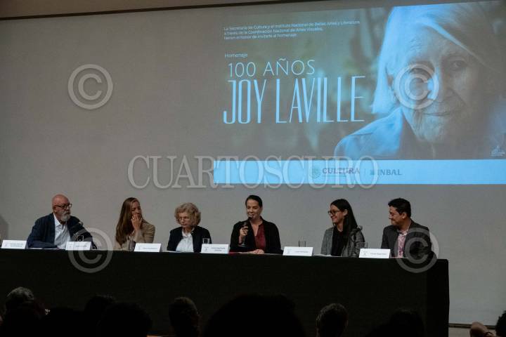 CIUDAD DE MÉXICO, 08SEPTIEMBRE2023.- Mesa con motivo del homenaje a 100 años del natalicio de Joy Laville en la Sala Manuel M. Ponce del Palacio de Bellas Artes FOTO: GALO CAÑAS/CUARTOSCURO.COM