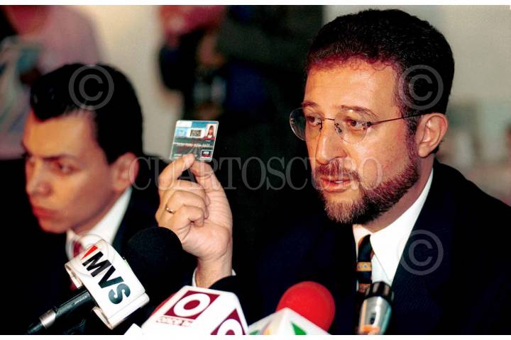 Juan Antonio Fernández, director del programa Procampo, presentó la tarjeta de este programa gubernamental de apoyo a campesinos para facilitar el crédito y así evitar robos o pérdidas de los cheques. FOTO: Victoria Valtierra/CUARTOSCURO.COM