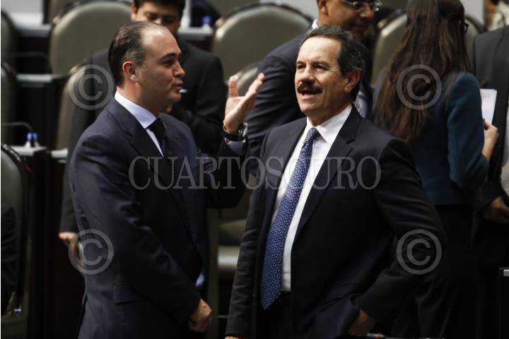 MÉXICO, D.F, 04DICIEMBRE2012.- Los diputados del PAN, Luis Alberto Villareal y Juan Bueno Torio durante la sesión ordinaria de la Cámara de Diputados en donde Jesús Murillo Karam pidió licencia para ejercer el cargo de Procurador General de la República. FOTO: RODOLFO ANGULO /CUARTOSCURO.COM