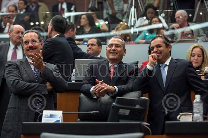 MÉXICO, D.F., 29JULIO2015.- Los senadores Juan Bueno Torio, PAN, Manlio Fabio Beltrones, PRI y Ernesto Cordero, PAN, durante la sesión de la Comisión Permanente. FOTO: CUARTOSCURO.COM