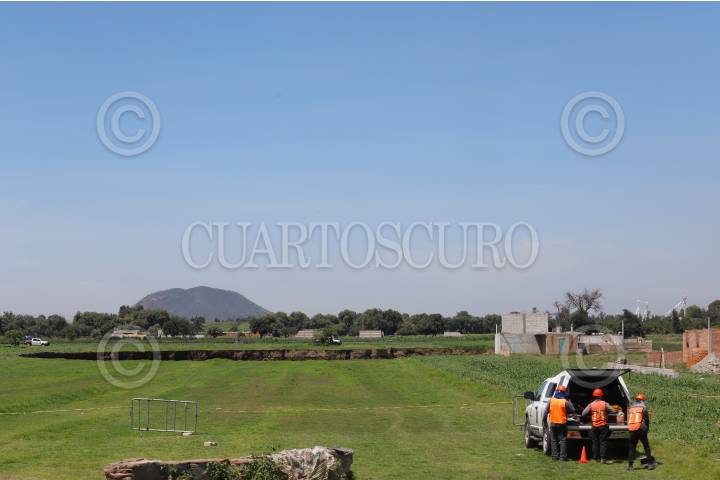 El socavón que se formó en el poblado de Zacatepec, en Puebla, continúa creciendo, el día de hoy autoridades reportaron que su diámetro alcanza ya los 110 metros.