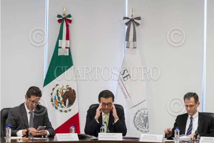 CIUDAD DE MÉXICO, 02AGOSTO2017.- Juan Carlos Baker Pineda, subsecretario de Economía Exterior; Ildefonso Guajardo, secretario de Economía, y Kenneth Smith Ramos jefe negociador técnico del TLCAN, durante la presentación del equipo negociador del Tratado de Libre Comercio con América del Norte. FOTO: MOISÉS PABLO /CUARTOSCURO.COM