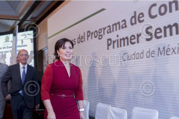CIUDAD DE MÉXICO, 12JULIO2016.- Juan Carlos Lastiri Quirós, subsecretario de Desarrollo Urbano y Vivienda, y Rosario Robles Berlanga, secretaria de Desarrollo Agrario, Territorial y Urbano (Sedatu), durante la presentación "Avances del programa de consolidación de reservas urbanas primer semestre de 2016". FOTO: MOISÉS PABLO /CUARTOSCURO.COM