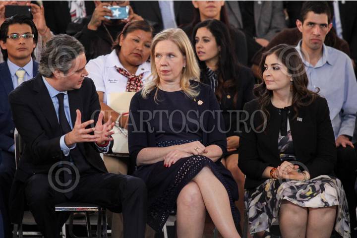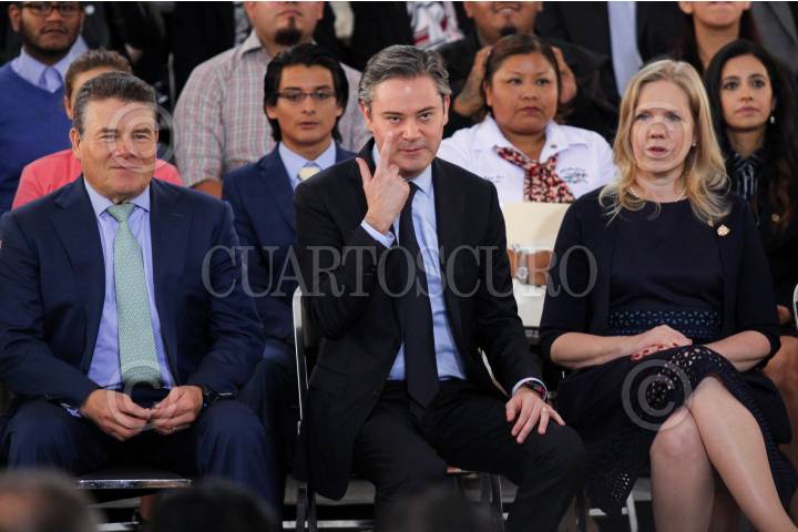 CIUDAD DE MÉXICO, 11JULIO2017.- Aurelio Nuño Mayer, secretario de Educación Pública, Mercedes Muratorio, directora regional de Cambridge English Language Assessment, y Elva Patricia Saracho, rectora de la Universidad Tecnológica el Retoño, durante la presentación de la Estrategia Nacional de Inglés próxima a iniciarse en el ciclo escolar 2018-2019. FOTO: GALO CAÑAS /CUARTOSCURO.COM