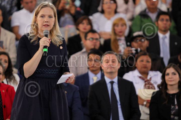 CIUDAD DE MÉXICO, 11JULIO2017.- Mercedes Muratorio, directora regional de Cambridge English Language Assessment, durante la presentación de la Estrategia Nacional de Inglés próxima a iniciarse en el ciclo escolar 2018-2019. FOTO: GALO CAÑAS /CUARTOSCURO.COM