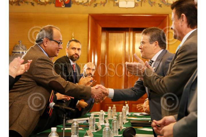 CIUDAD DE MÉXICO, 18ENERO2018.- Juan Díaz de la Torre, secretario general del Sindicato Nacional de Trabajadores de la Educación (SNTE) le entregó el pliego petitorio general del año 2018 del sindicato a Otto Granados Roldán, secretario de Educación Pública. FOTO: SEP /CUARTOSCURO.COM