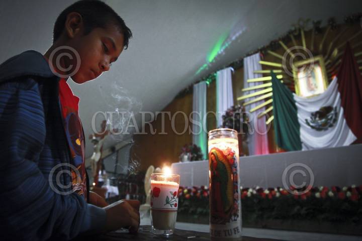 CUERNAVACA, MORELOS, 12DICIEMBRE2024.- Cientos de católicos acuden al chapitel del Calvario a celebrar el 493 aniversario de la aparición de la Virgen de Guadalupe al indio Juan Diego en el cerro del Tepeyac. Padres y madres de familia llevaron a sus hijos pequeños vestidos con atuendo de indígena, emulando al "visionario mariano". FOTO: MARGARITO PÉREZ RETANA/CUARTOSCURO.COM