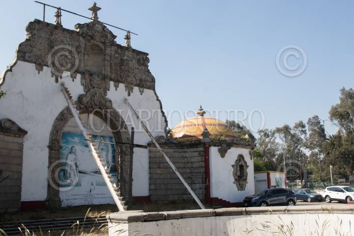 CIUDAD DE MÉXICO, 30DICIEMBRE2018.- El templo a San Juan Diego continua en obra negra, ubicado en avenida Montevideo casi esquina con Insurgentes, a unos metros de la Basílica de Guadalupe, tras la canonización del ahora Santo Juan Diego por parte del Vaticano hace ya casi 16 años autoridades capitalinas y eclesiásticas habían anunciado con bombo y platillos su recuperación, hoy su fachada luce apuntalada con unas vigas y su explanada sirve de estacionamiento. FOTO: MOISÉS PABLO /CUARTOSCURO.COM