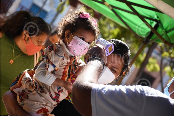 En la entrada de la Iglesia de Campeche se tomó la temperatura a los niños que ingresaban.
