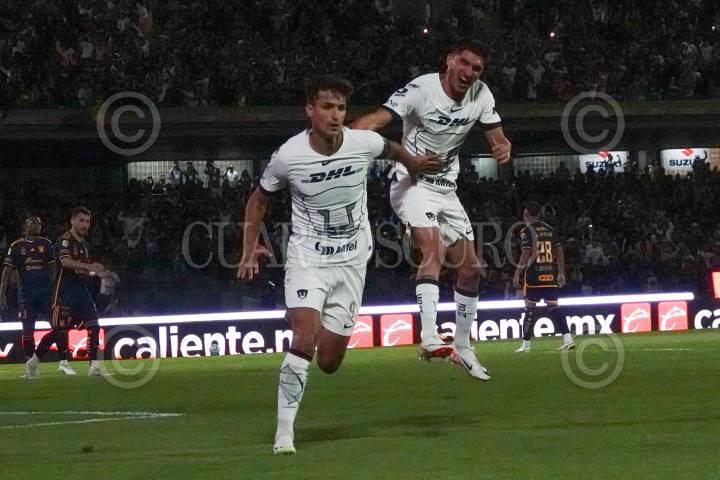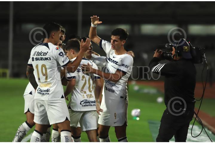 Juan Dinenno y Pablo Bennevendo celebraron el primer gol anotado en su favor durante la Jornada 6 de la Apertura 2023 en el Estadio Olímpico Universitario