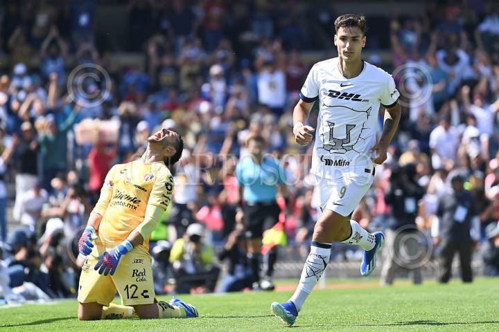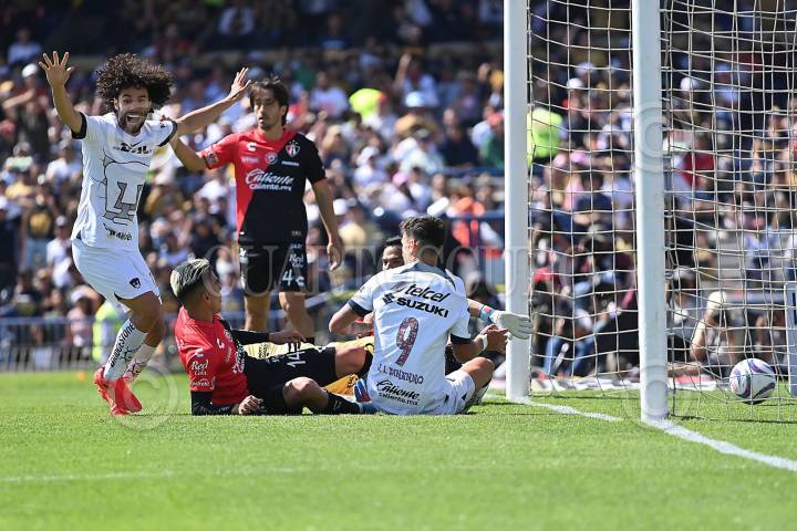 CIUDAD DE MÉXICO, 05NOVIEMBRE2023.- Los Pumas derrotaron por 3-0 al Atlas en CU y aseguraron así su presencia en la fase final del Apertura 2023 con 25 puntos después de 16 encuentros disputados. Los goles de los universitarios fueron de Juan Dinenno, César Huerta y Gustavo del Prete. La escuadra universitaria llegó de momento al quinto lugar y tiene la opción de avanzar al cuarto puesto cuando reciba a las Chivas de Guadalajara en la Fecha 17, última de la fase regular del torneo, nuevamente en el Estadio Olímpico Universitario. FOTO: CORTESÍA CLUB PUMAS/CUARTOSCURO.COM