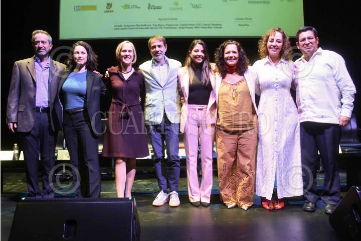 CIUDAD DE MÉXICO, 10JUNIO2025.- Izara García Rodríguez, coordinadora internacional del Hay Festival; Susannah Goshko, embajadora británica en México; Juan Duarte Cuadrado, embajador de España en México; Daniela Salgado Márquez, secretaria de Cultura del Municipio de Querétaro, y Cristina Fuentes La Roche, directora internacional de Hay Festival, durante la presentación de la décima edición del "Hay Festival Querétaro" que se llevará a cabo del 4 al 7 de septiembre. El evento tuvo lugar en el Centro Cultural de España en México. FOTO: MARIO JASSO/CUARTOSCURO.COM