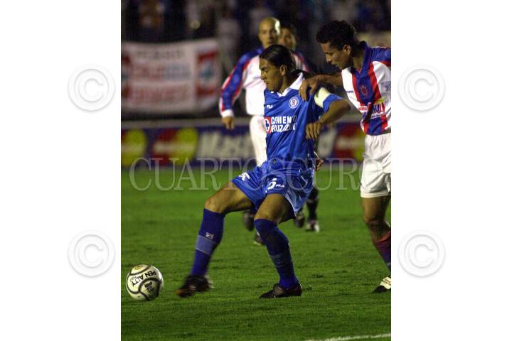 Paco Palencia, uno de los azules más activos, durante el partido entre Cruz Azul y Cerro Porteño en la cancha del Estadio Azul. FOTO: Pedro Mera/CUARTOSCURO.COM