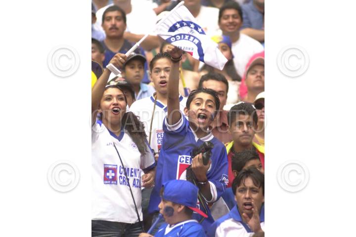 Aficionados cruzazulinos festejan el triunfo de su equipo, quien venció 3-1 al América en el llamado "clásico jóven" en el estadio Azteca. Con este resultado, el Cruz Azul trepa al segundo lugar del Grupo Tres al sumar 23 puntos, mientras las Aguilas se quedan en el tercer lugar del primer sector con 26 unidades. FOTO: Juan Pablo Zamora/CUARTOSCURO.COM