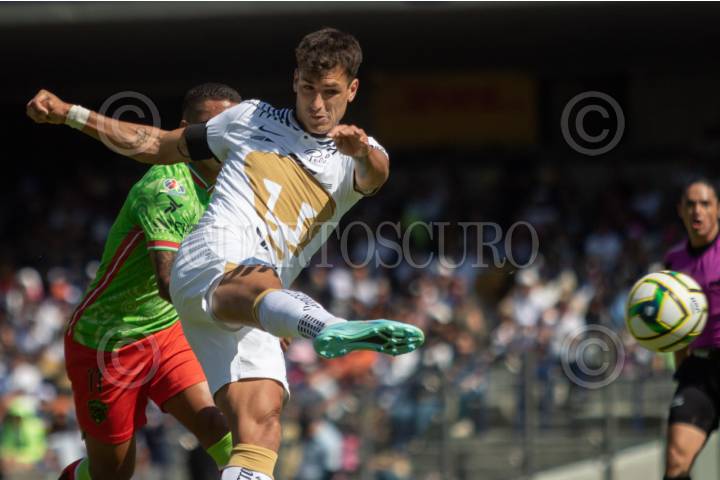Juan Ignacio Dinenno anotó el primer gol de los Pumas ante el Atlas, en el Estadio Olímpico Universitario.