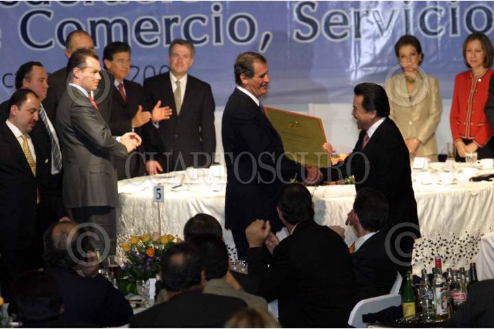 El presidente Vicente Fox entrega a Juan Manuel Ley un reconocimiento por su descatacada labor como empresario. FOTO: Nelly Salas/CUARTOSCURO.COM