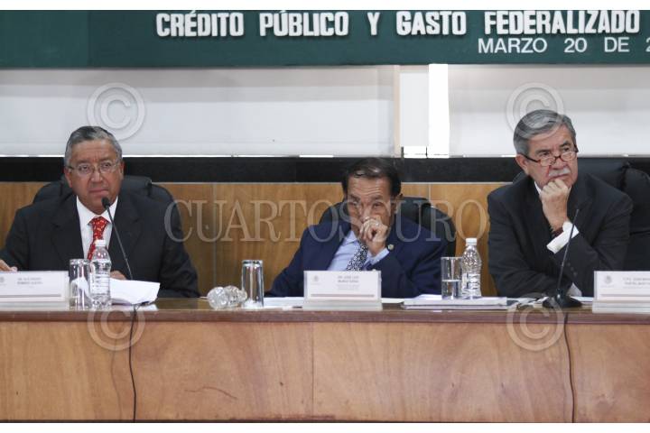 MÉXICO, D.F. 20MARZO2015.- Juan Manuel Portal, Auditor Superior de la Federación, Manuel Huerta Ladrón de Guevara, diputado de MORENA y José Luis Muñoz Soria, presidente de la comisión de vigilancia de la Auditoria Superior de la Federación, durante la primera reunión de trabajo, análisis de las auditorias en funciones de gobierno, hacienda y crédito público y gasto federalizado. FOO: SAÚL LÓPEZ /CUARTOSCURO.COM