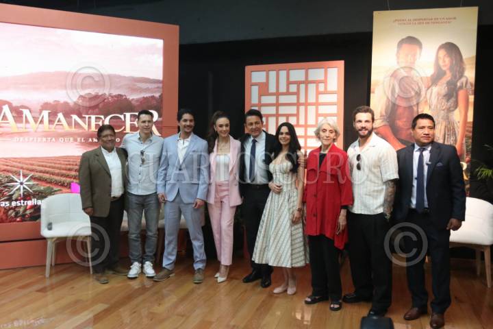CIUDAD DE MÉXICO, 04AGOSTO2025.- El productor Juan Osorio acompañado de los actores Ana Balena, Fernando Colunga, Livia Brito, Julieta Egurrola y Nicola Porcella durante la conferencia de prensa de la telenovela Amanecer realizada en Televisa San Ángel. FOTO: GRACIELA LÓPEZ/CUARTOSCURO.COM