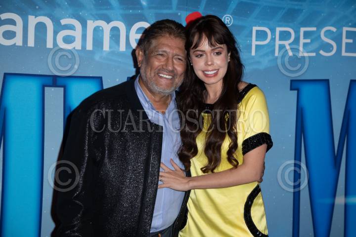 Juan Osorio y Eva Daniela a su paso por la alfombra roja por el estreno del musical “Mamma Mía”, en el Teatro de Los Insurgentes.