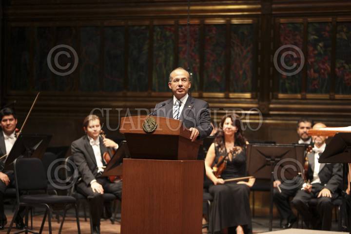 MÉXICO, D.F., 29JUNIO2012.- Felipe Calderón Hinojosa, presidente de la República asistió al Palacio de Bellas Artes en donde se realizó el Concierto Conmemorativo del Centésimo Aniversario del Natalicio de Jose Pablo Moncayo. FOTO: IMPERIO RESENDIZ /CUARTOSCURO.COM