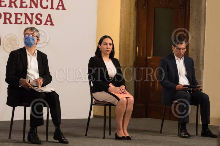 Juan Pablo Graf Noriega, presidente de la Comisión Nacional Bancaria y de Valores (CNBV); Jorge Meléndez Barrón, titular Unidad de Banca, Valores y Ahorro de la Secretaría de Hacienda y Crédito Público (SHCP), y Mireya Valverde Okon, directora general de Asuntos Normativos de la UIF, durante la presentación de la Evaluación Nacional de Riesgos 2019-2020.