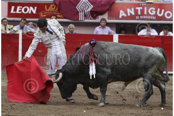 Juan Pablo Sánchez durante la corrida en la Plaza de la Luz en León, Guanajuato.