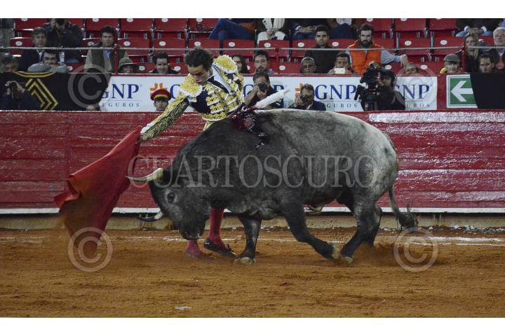 CIUDAD DE MÉXICO, 17DICIEMBRE2017.- El torero Juan Pablo Sánchez, cortó una oreja durante su primer lote y casi lo consigue con el segundo, durante su participación en la Plaza México. FOTO: GABINO ACEVEDO /CUARTOSCURO.COM