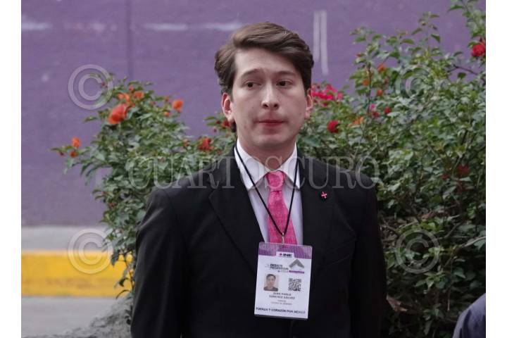 CIUDAD DE MÉXICO, 28ABRIL2024.- Juan Pablo Sánchez, hijo de Xóchitl Gálvez, candidata a la presidencia por la coalición "Fuerza y Corazón por México", durante su llegada al Segundo Debate Presidencial en las instalaciones de Estudios Churubusco. FOTO: GRACIELA LÓPEZ /CUARTOSCURO.COM