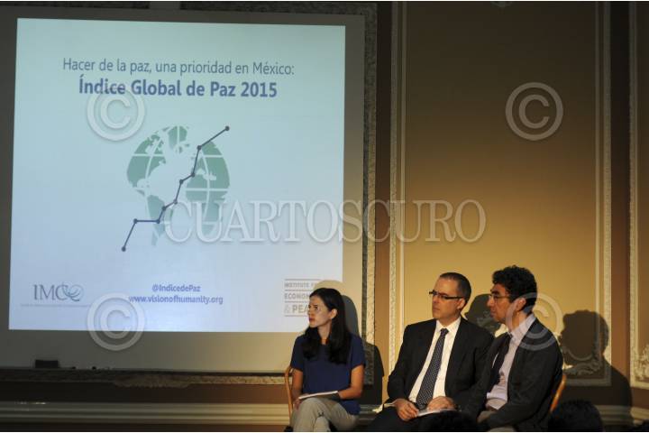 MÉXICO, DF, 02JUNIO15.- Patricia de Obeso, vocera y representante en México del Instituto para la Economía y la Paz; Guillermo Trejo, profesor de la Universidad de Notre Dame y Juan Pardinas, director general del Instituto Mexicano para la Competitividad, A.C., presentaron el Indice de Paz Global 2015 del Instituto para la Economía y Paz, que mide los conflictos internos e internacionales, la seguridad, protección en la sociedad y la militarización en 162 países, colocando a México en el puesto 144 en 2015, siendo el menos pacifico de la región de Centroamérica y el Caribe. FOTO: RUBÉN ESPINOSA /CUARTOSCURO.COM